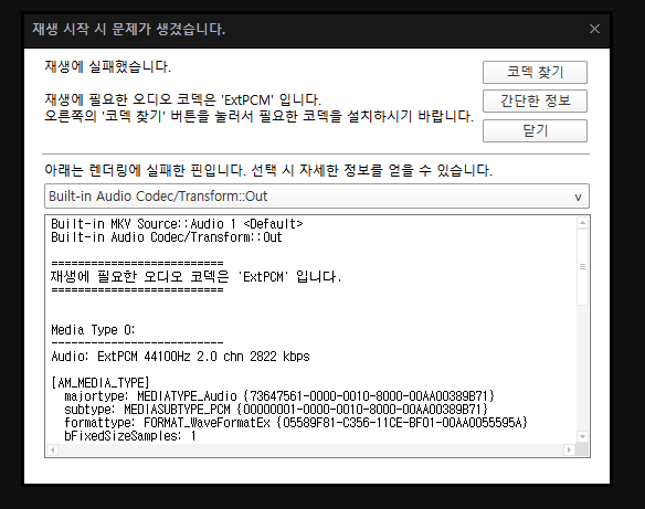 팟플레이어의 환경 설정 -> 소리 -> 기본 출력 장치 -> 내장 WASAPI Audio Renderer로 바꾸면 해결 될것으로 봐지지만..