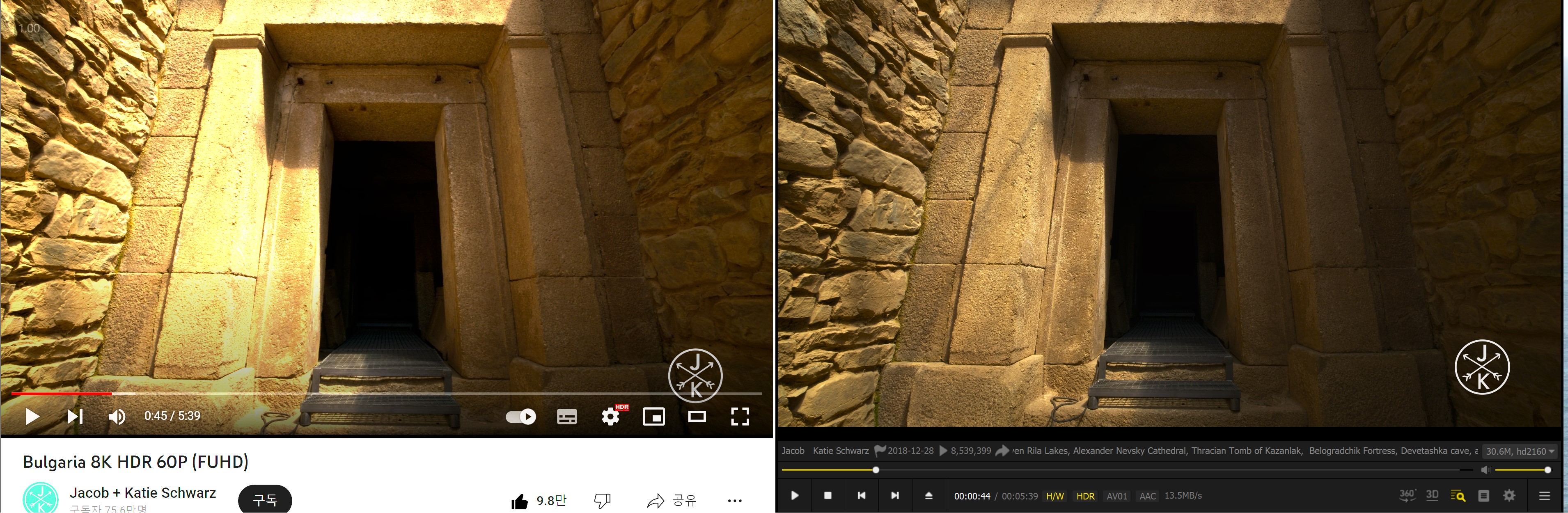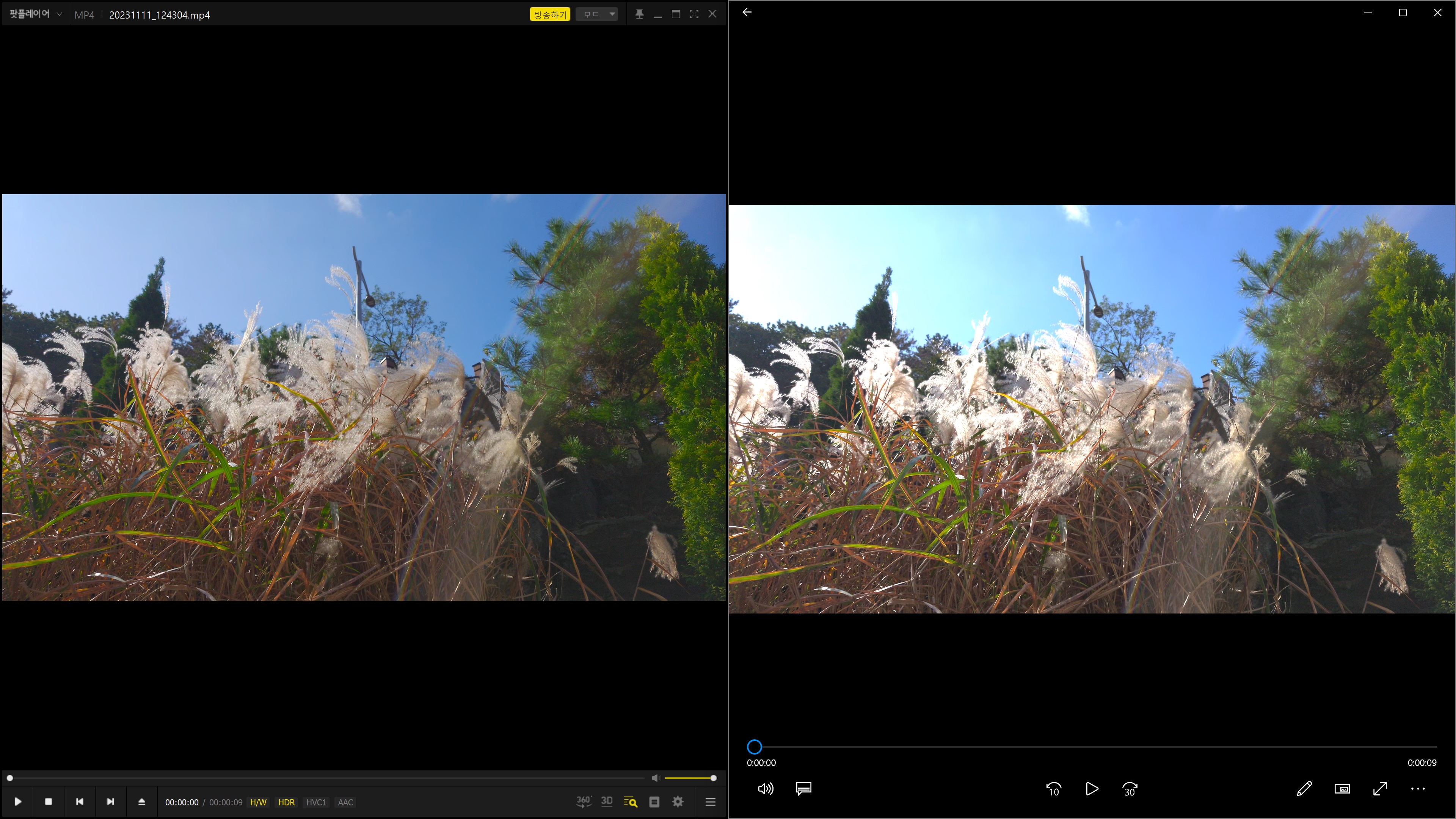직접 촬영한 영상 또한 기본 플레이어와 달리 HDR 표현이 다른 것 같습니다.