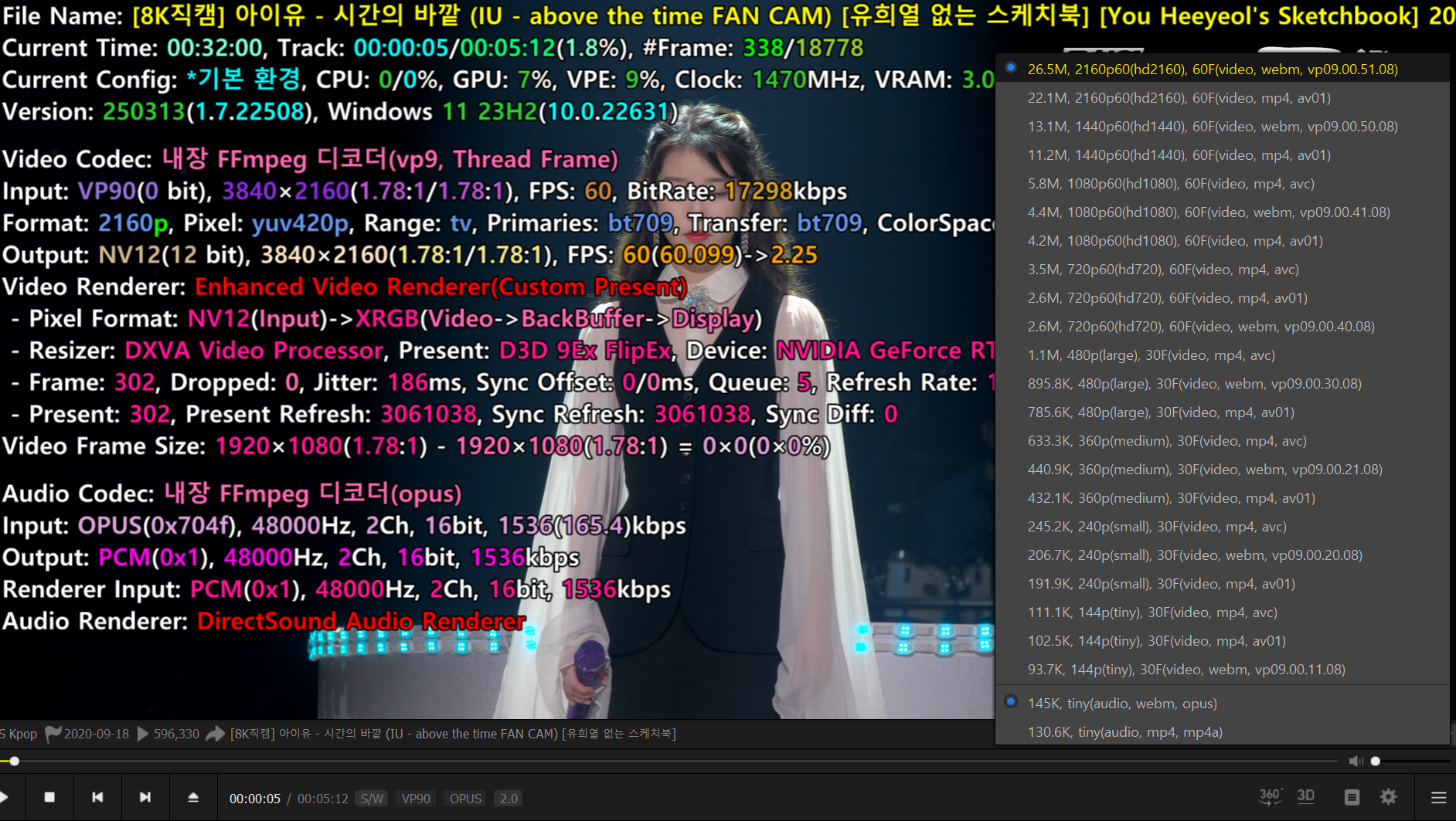 cpu랑 그래픽카드가 av1 코덱 지원을 해서 유튭 8k영상을 아예 다운받아서 하면 잘 재생되는데