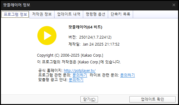 작성자팟플.개발자 작성시간 25.10.13 팟플레이어가 옛날 버전이네요~~