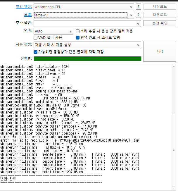 안녕하세요 소리자막생성문의드립니다 작성자sdfnie3|작성시간26.04.02|조회수27 목록 댓글 1 글자크기 작게가 글자크기 크게가 소리자막 해보려고하는데 몇몇 영상은되는데 몇개는 또안되더라구요.. 이렇게뜹니다... 뭐가문제일까요? 다음검색 현재 게시글 추가 기능 열기 북마크 공유하기 신고 센터로 신고 댓글 댓글 1 댓글쓰기 답글쓰기 댓글 리스트 작성자팟플.개발자 | 작성시간 26.04.03 new c드라이버의 용량 부족등으로 인해서 wav파일을 만들지 못해서 그런거 같네요~~c드라이버의 남은 용량을 확인해 보시고...또한 위의 메시지에 있는..c:\Users\ae****** 저 경로에 가서 해당 파일이 있는지 확인해 보시고.해당 파일을 팟플레이어로 재생을 해봐서 wav파일이 잘 만들어 졌는지 확인해 보시기 바랍니다. 댓글 전체보기