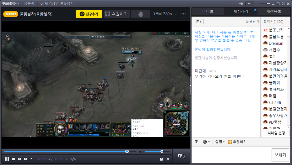 - 후원하기 및 방송 신고 버튼 위치 신버전과 동일하게 조정