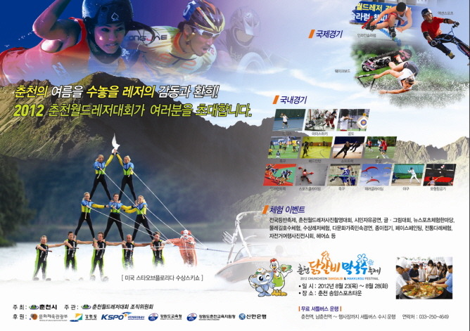 2012춘천월드레저대회(8.24-8.28)에 놀러오세요 작성자사진선|작성시간12.08.08|조회수25 목록 댓글 0 글자크기 작게가 글자크기 크게가 다음검색 현재 게시글 추가 기능 열기 북마크 신고 센터로 신고 댓글 댓글 0 댓글쓰기 답글쓰기 댓글 리스트