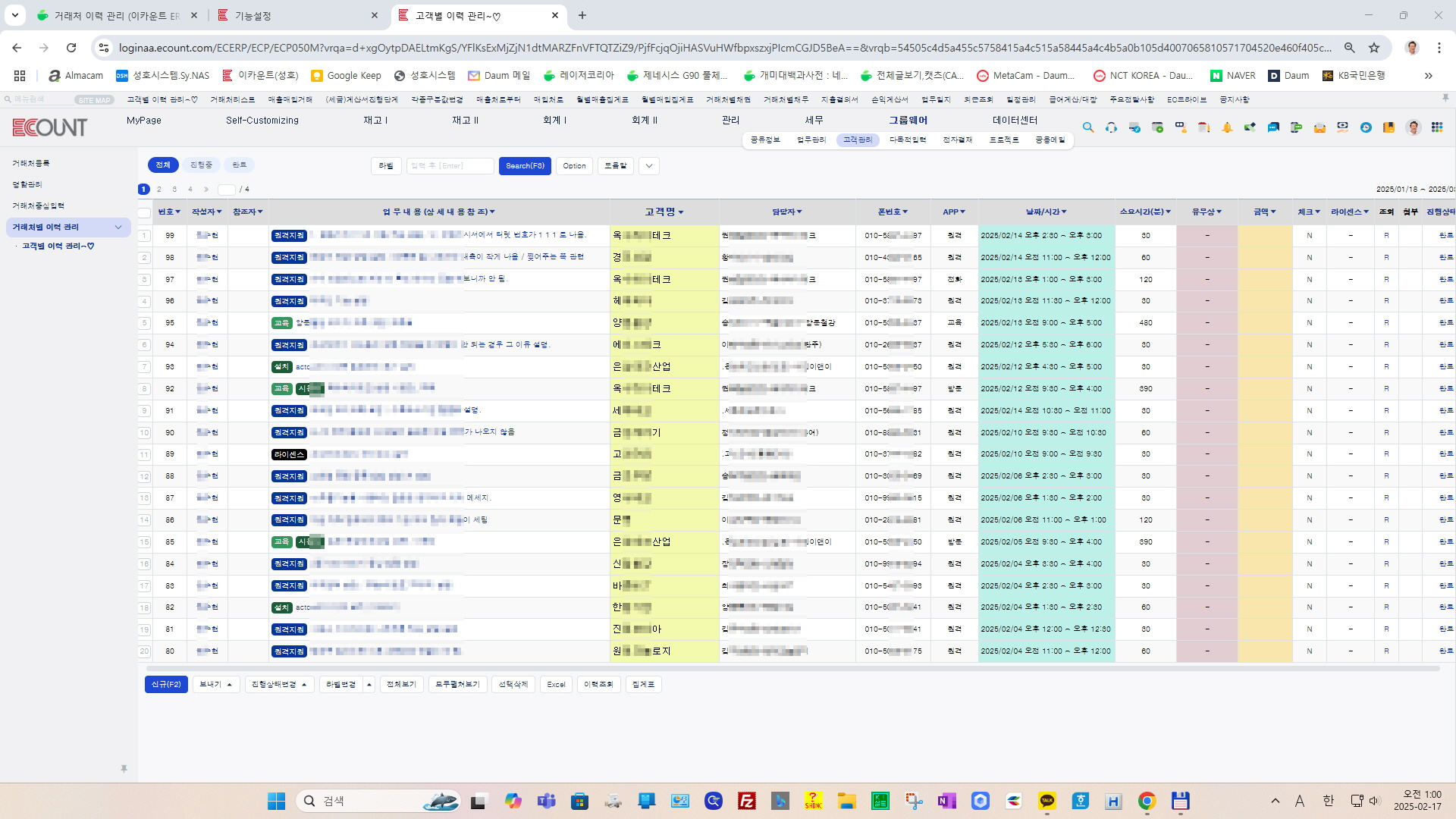 고객별 이력 관리 (이카운트 ERP 에서 적용)