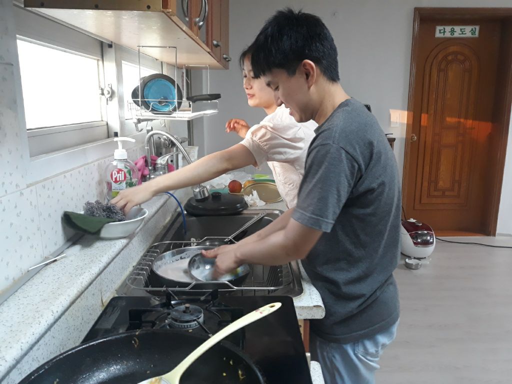 저녁을 다 먹은 후, 영석님이 먼저 설거지를 하겠다고 말했습니다. 영석님과 세빈님은 설거지를, 저는 음식물 쓰레기 버릴 곳을 찾았습니다. 이렇게 오늘의 일과가 마무리 되었습니다.