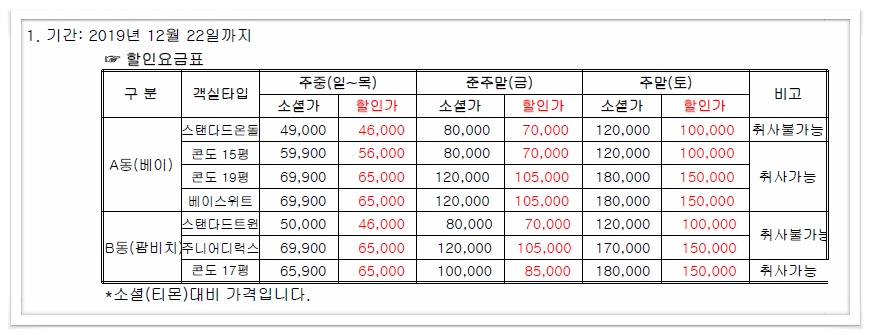 2019년 12월 22일까지 할인요금표이며, 이후 요금표는 다시 올릴께요