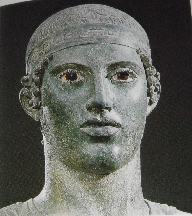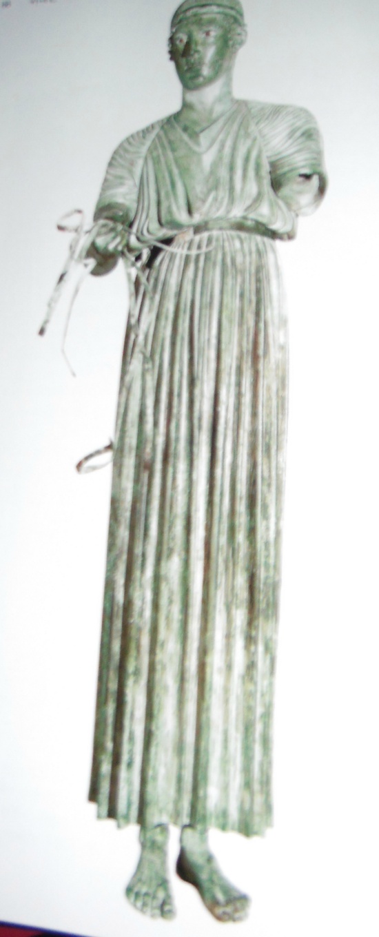 <전차 경주자>. 기원전 475년경.청동. 델포이 출토. 높이180cm. 델포이 고고학 박물관