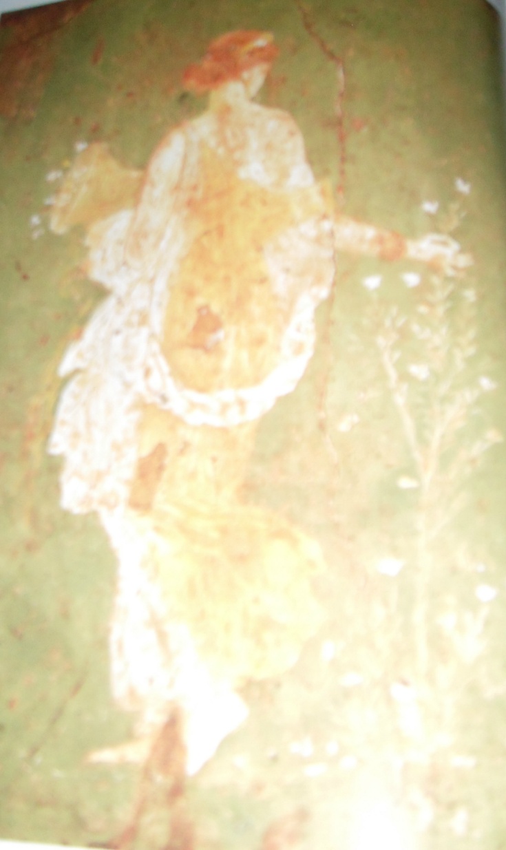 <꽃을 꺾고 있는 처녀>.1세기. 스타비아이에서 발굴된 벽화의 부분. 나폴리 국립 고고학 박물관