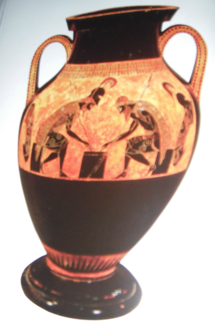 <장기를 두고 있는 아킬레스와 아이아스> 기원전 540년경. 엑세키아스의 서명이 있는 흑회식 도자기, 높이 61 cm, 바티칸 박물관