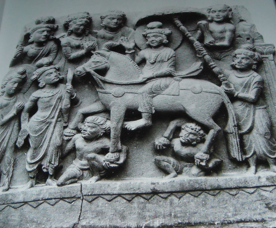 <출가하는 고타마(석가모니)>.2세기경. 파키스탄 (고대의 간다라)로리얀 탕가이에서 출토.48*54cm 캘커타 인도 박물관
