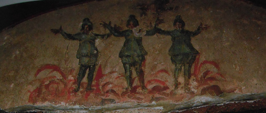 <타오르는 불길 속의 세사람>. 3세기 프리스킬라 지하 묘굴의 벽화. 로마