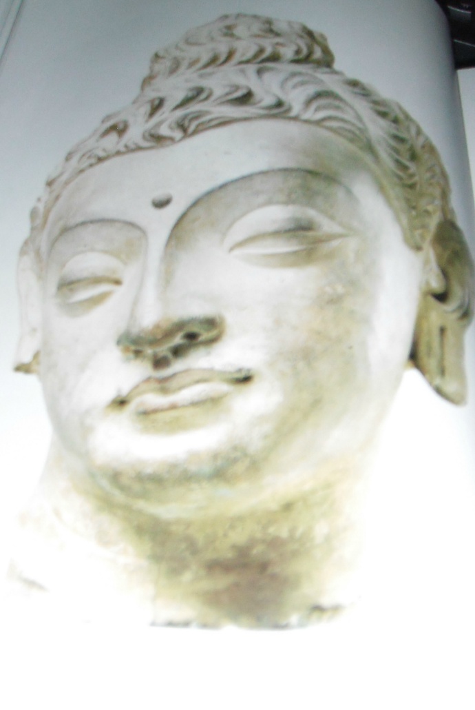 <석가모니 두상>. 4-5세기경. 아프가니스탄(고대의 간다라) 하다에서 출토.석고상에 옅은 채색.높이 29cm 런던 빅토리아 앤드 앨버트 박물관