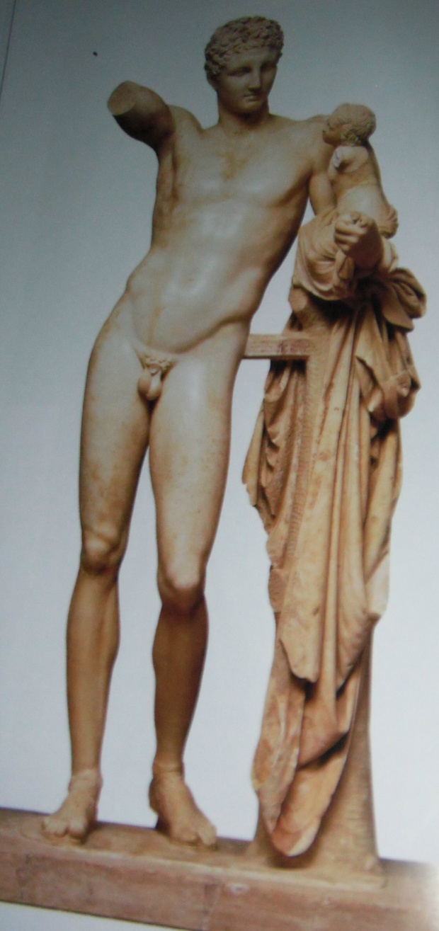 프락시텔레스<헤르메스와 어린 디오니소스>.기원전 340년경. 대리석. 높이 213cm.올림피아 고고학 박물관
