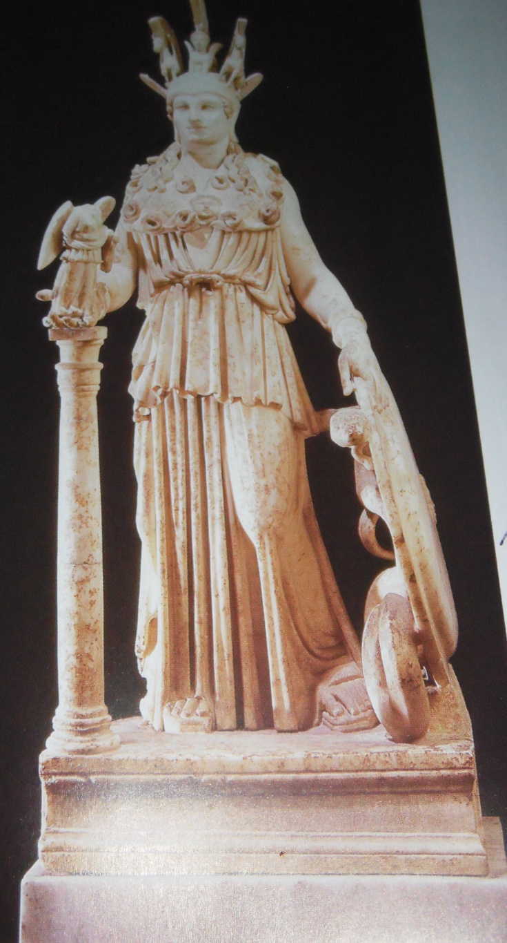 <아테나 파르테노스>페이디아스가 기원전 447년견부터 432년 사이에 제작한 신전의 거상 <나무와 금과 상아>을 본 떠 만든 로마의 대리석 복제품 높이104cm아테네 국립 고고학 박물관