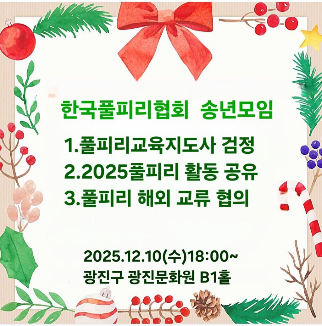2025 한국풀피리협회 송년모임 작성자풀깨비🌿그림책|작성시간25.12.07|조회수5 목록 댓글 0 글자크기 작게가 글자크기 크게가 다음검색 현재 게시글 추가 기능 열기 북마크 공유하기 신고 센터로 신고 댓글 댓글 0 댓글쓰기 답글쓰기 댓글 리스트
