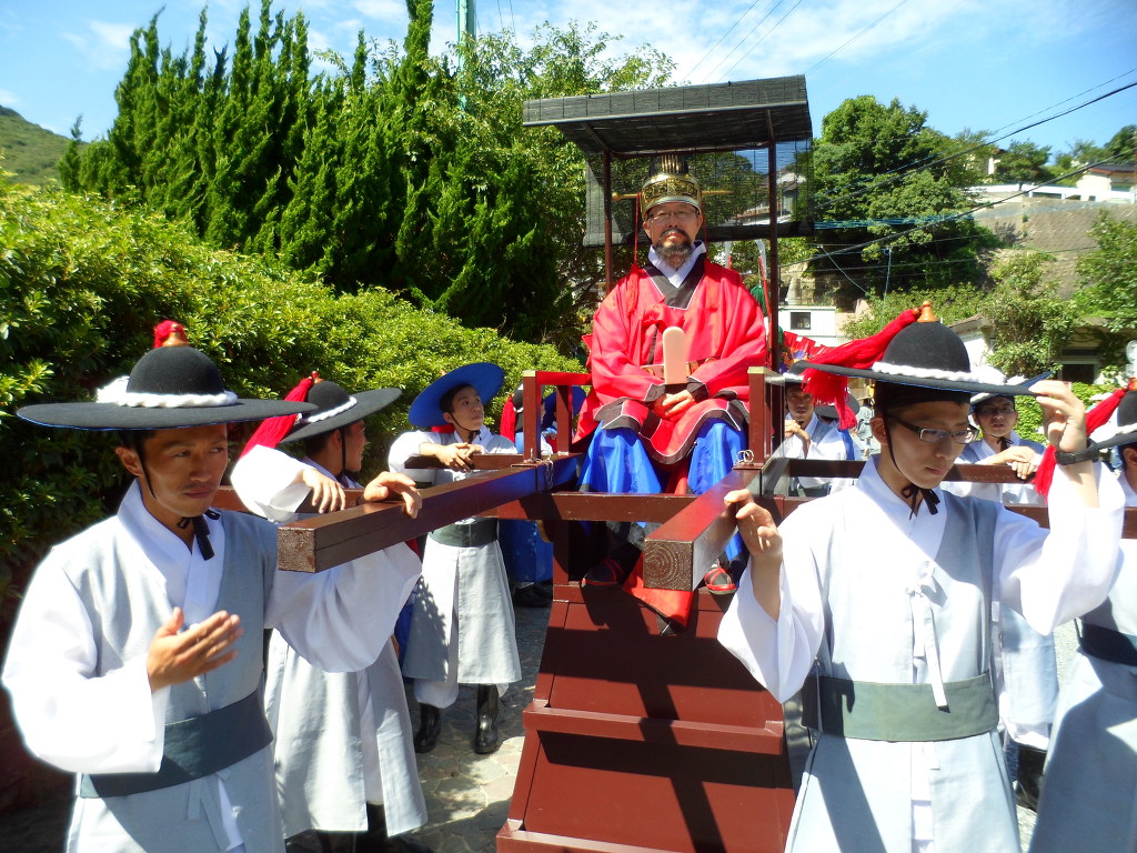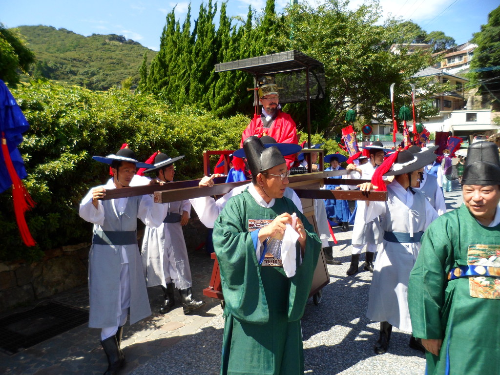 2012년도 조선통신사 한일 문화교류 행사가 지난 8월 4일과 5일 2일간 釜山市, 釜山文化財團, 長崎縣 對馬市, 쓰시마아리랑祝祭振興會, 朝鮮通信使 行列振興會 공동 주최로 日本의 長崎縣 對馬市에서 열렸습니다. 이 행사는 매년 거행되고 있으며, 금년에는 吾尹의 東卨현종(대종회부회장, 한성공종회장)이 國書를 전달하는 통신사의 正使로 추대되어 그 사명을 다하였습니다. 조선통신사는 임진왜란이후 일본 德川家康 幕府의 요청에 의해 宣祖40년(1607)부터 純祖11년(1811)까지 204년간 12회에 걸쳐 學問과 文化, 平和와 善隣友好를 위한 國家使節로 韓日文化交流에 크게 이바지하였고 특히 일본은 朝鮮의 文化文物을 받아들이는 國家的인 큰 行事로 여겼었다. 이번 朝鮮通信使 行列을 再現하는 行事도 樂隊, 騎馬隊, 사무라이, 吹打隊, 國書, 正使, 副使, 旗手團, 舞踊團 등 순서로 500여명의 행렬이 카네이시城 樓門을 출발하여 市街行進후 이즈하라항(嚴原港) 特設舞臺에서 國書를 교환하는 절차를 끝으로 재현행사를 종료하였습니다. 過去에도 吾尹에서는 肅宗8년(1682)에 있은 제7차 通信使의 正使로 東山公(諱 趾完)께서 473명의 수행원을 이끌고 다녀오셨습니다. 東山公은 右議政을 지내시고 忠正이라는 諡號를 받으셨으며 肅宗廟廷에 配享되셨습니다. 조선통신사 파견 기념행사는 매년 5월 용두산 공원과 광복로 일대에서 조선통신사 행렬이 재현되며, 동래부사가 통신사 3사(정사, 부사, 종사관)를 맞이하는 영접식을 축제의 시작으로 일본으로 떠나는 통신사의 무사안녕을 기원하는 해신제, 통신사 일행을 위로하기 위하여 경상좌수사가 부산에서 베풀었던 전별연 등이 행해지는 조선통신사 한일문화교류축제는 통신사의 출항지인 부산의 지리적, 역사적, 문화적 특성이 어우러진 대표적인 행사이기도 합니다.
