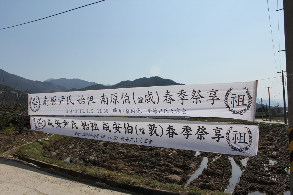 2012. 4. 5(목) 오전 11시 30분에 전남 구례군 산동면 이평리 용강재에서 春享이 거행되었습니다. 전국 각지에서 250여명의 종친분들께서 참석하셨습니다. 파평 6세 합문지후 휘 언인 : 초헌관 상호, 아헌관 재관, 종헌관 재효, 축관 규섭 파평 7세 전중내급사 휘 덕첨 : 초헌관 용섭, 아헌관 재률, 종헌관 문섭, 축관 연섭 파평 8세 남원시조 국자사업 남원백 휘 위 , 초헌관 영준, 아헌관 영철, 종헌관 치호, 축관 건호 남원 2세 정당문학 문평공 휘 극민 , 초헌관 빈섭, 아헌관 재홍, 종헌관 낙섭, 축관 주호 남원 3세 문하시중 함안백 휘 돈(윤위의 손자, 함안윤씨의 시조) 초헌관 선재, 아헌관 정복, 종헌관 웅림, 축관 영식