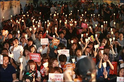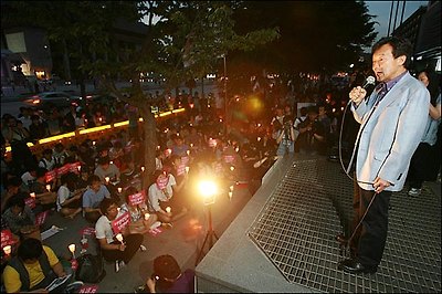“대학생들이 '살인 등록금'을 반값으로 내리라고 13일째 야간에 촛불시위를 하고 있다”