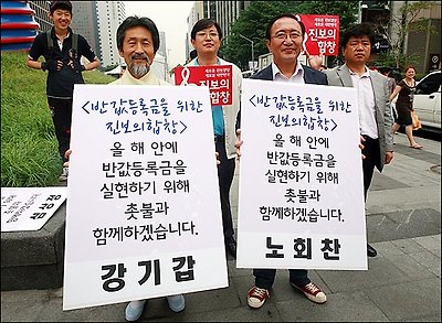 “서민의 인권과 복지를 앞세운 김대중의 '국민의 정부'와 국민의 행복를 앞세운 노무현의 '참여 정부'는 등록금의 측면에서 보면 대학생들에게 살인 학비 부담을 강요한 反서민적, 反복지적, 反인권적 독재정권이었다”.
