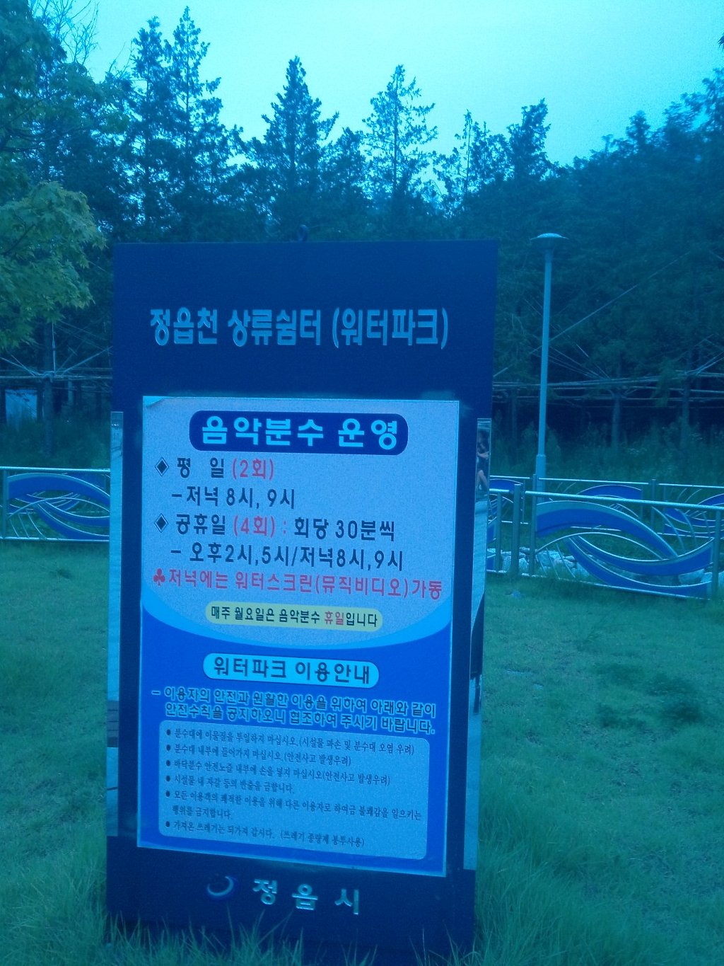 시조탄강 1122년 08월 16일 전북 정읍시 워터파크 밤8시 음악분수 동영상 및 내장산국립공원 입구와 워터파크 주변과 음악분수 사진들