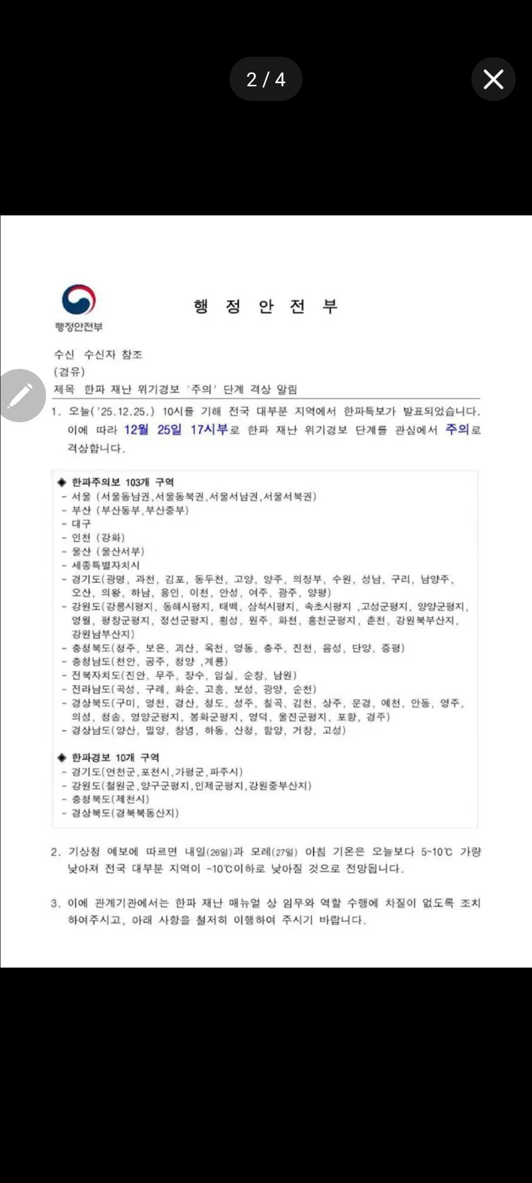 이재명 정부 재난 대비 공문 작성자mainzyoon|작성시간25.12.25|조회수28 목록 댓글 0 글자크기 작게가 글자크기 크게가 다음검색 현재 게시글 추가 기능 열기 북마크 공유하기 신고 센터로 신고 댓글 댓글 0 댓글쓰기 답글쓰기 댓글 리스트