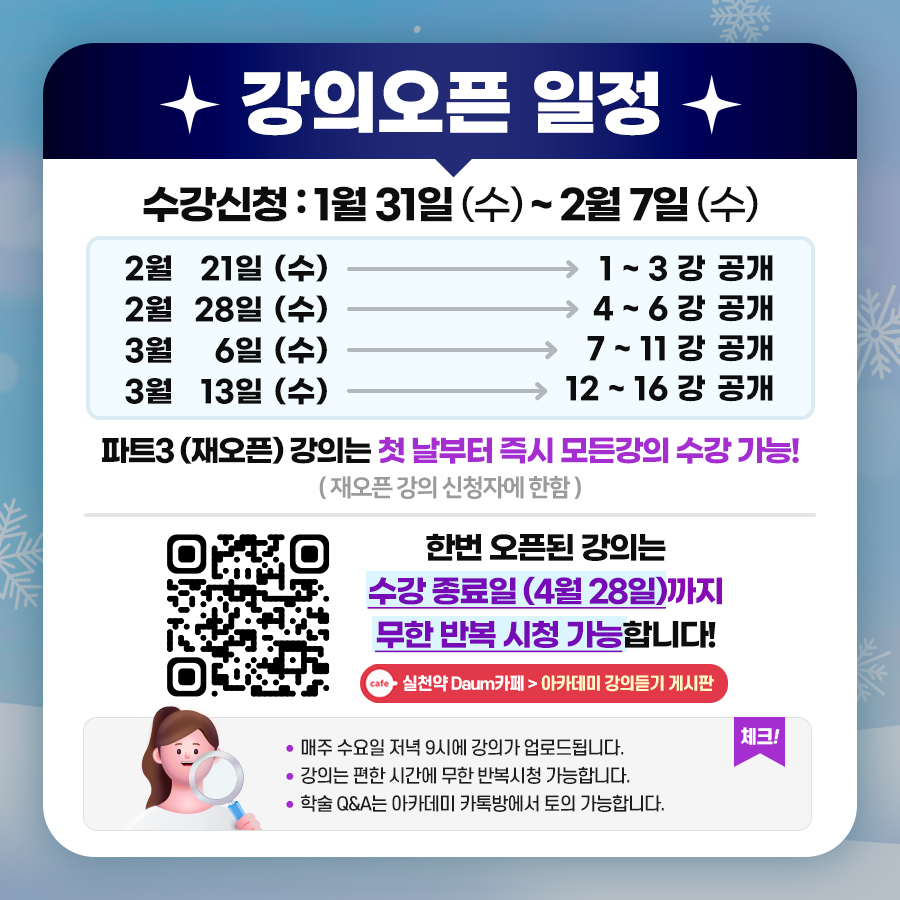 step 5. 2/21 강의 오픈 이후 실천약 다음카페 "강의실" 게시판에서 강의 수강