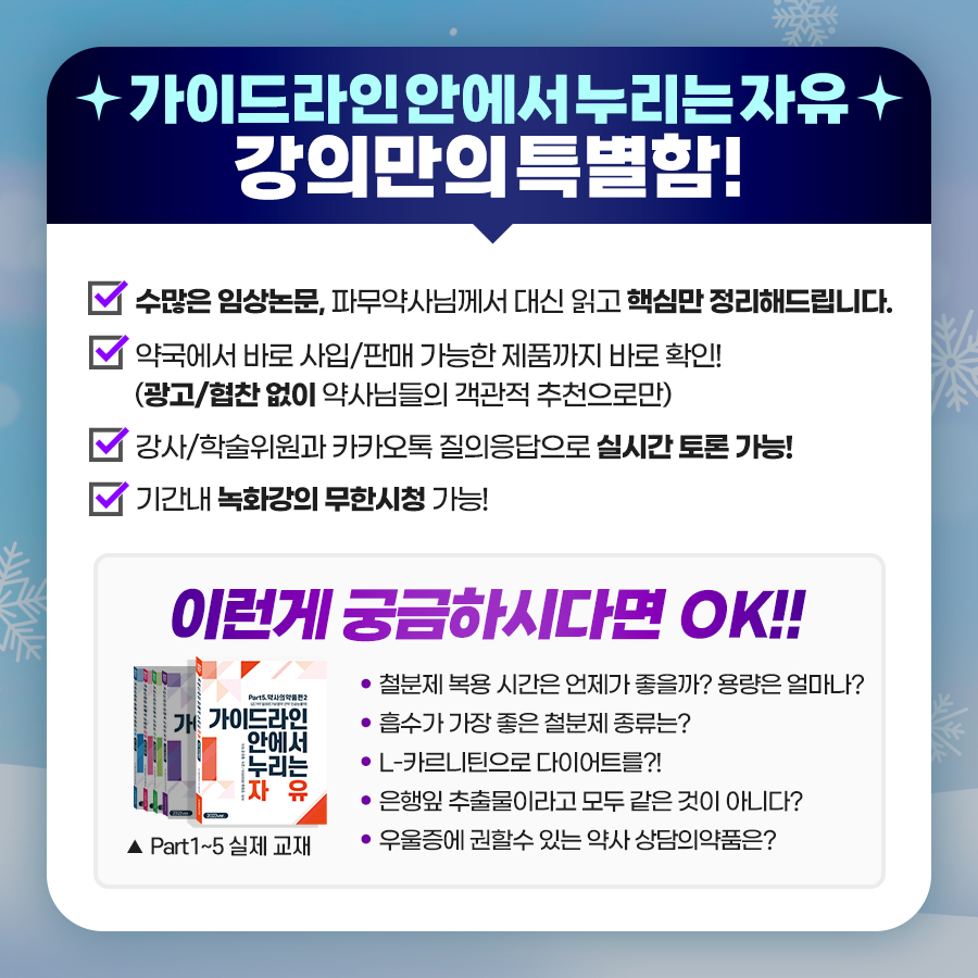 💊가이드라인안에서 누리는 자유 PART6는 수강자 전원에게 PDF를 제공합니다.