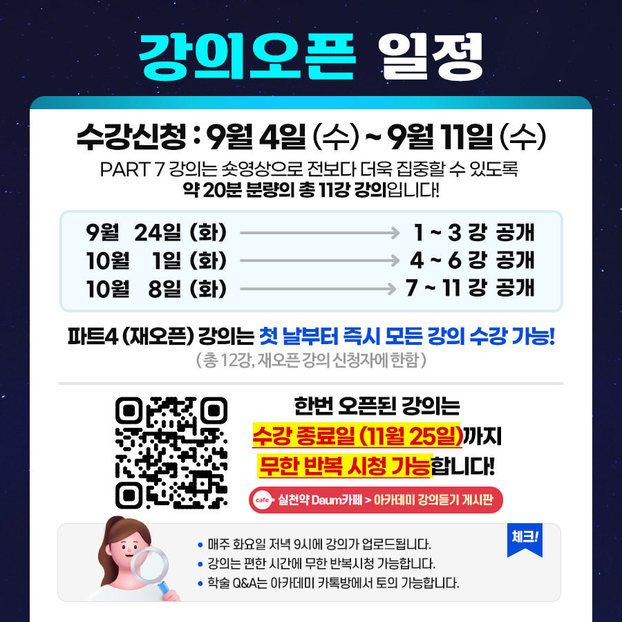 step 5. 9/24 강의 오픈 이후 실천약 다음카페 "강의실" 게시판에서 강의 수강
