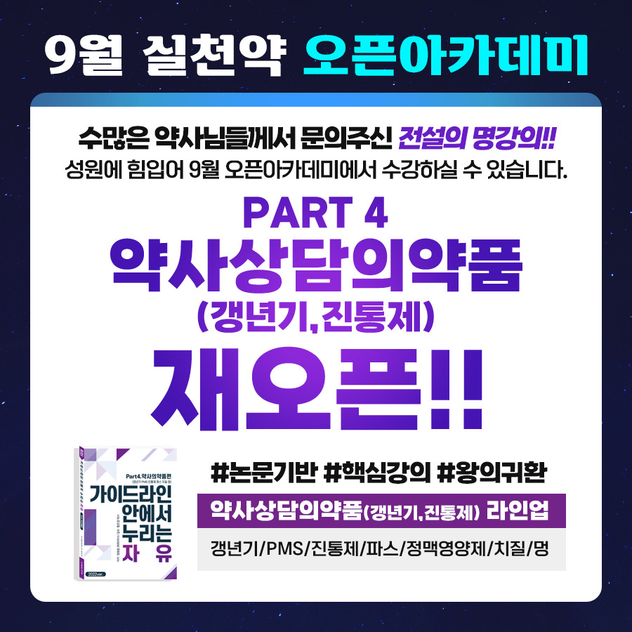 ➕️ 다시 돌아온 PART4. 약사의약품편 (갱년기/진통제등) 재오픈!! ♣