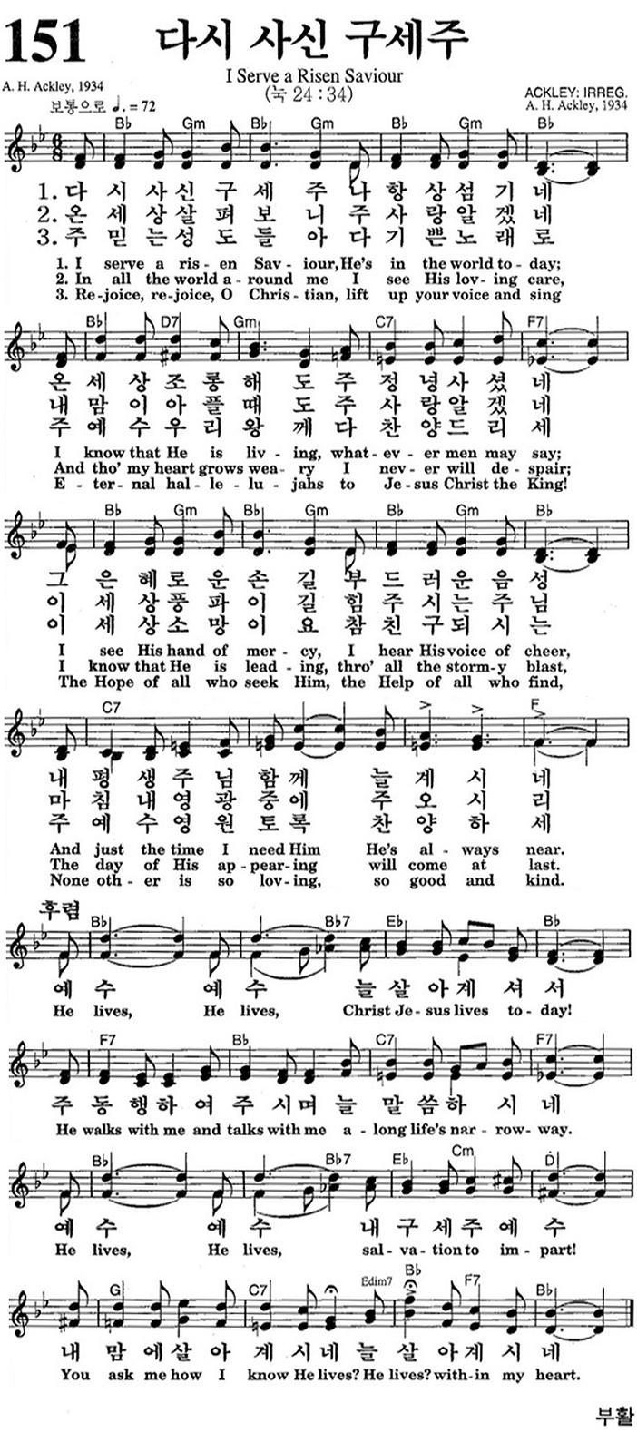 [스크랩] (♬在) (영어 찬송) 151장, 다시 사신 구세주, I Serve a Risen Saviour (♬在)