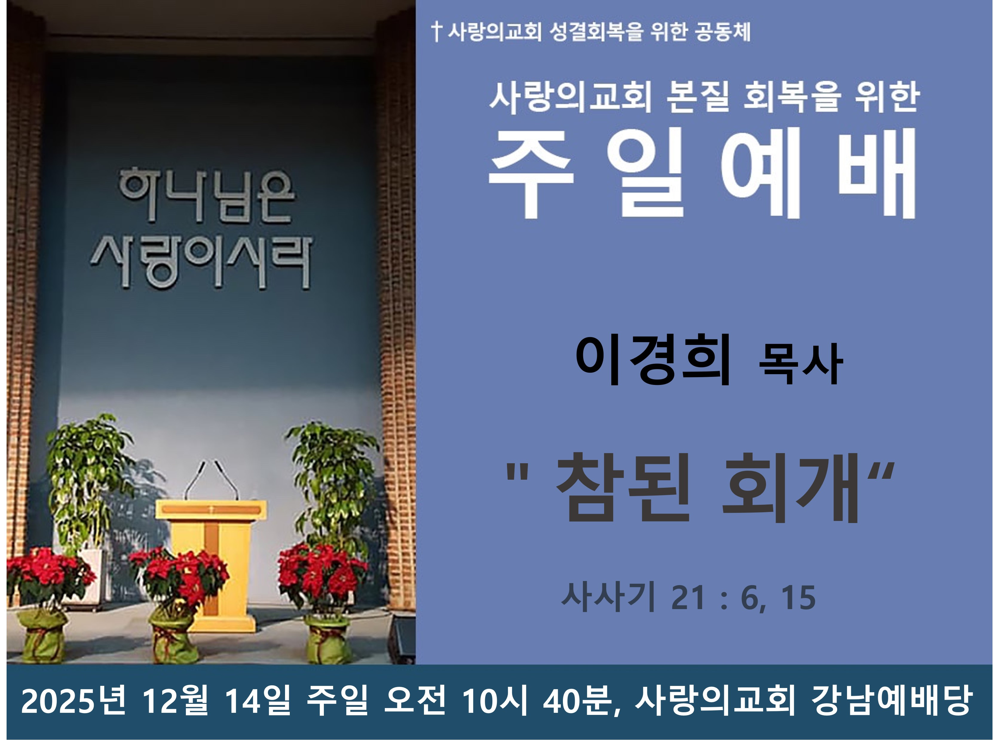 ㅇ 일 시 : 2025년 12월 14일 주일 오전 10시 40분