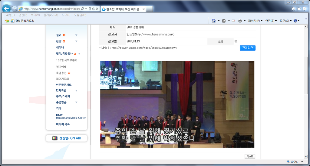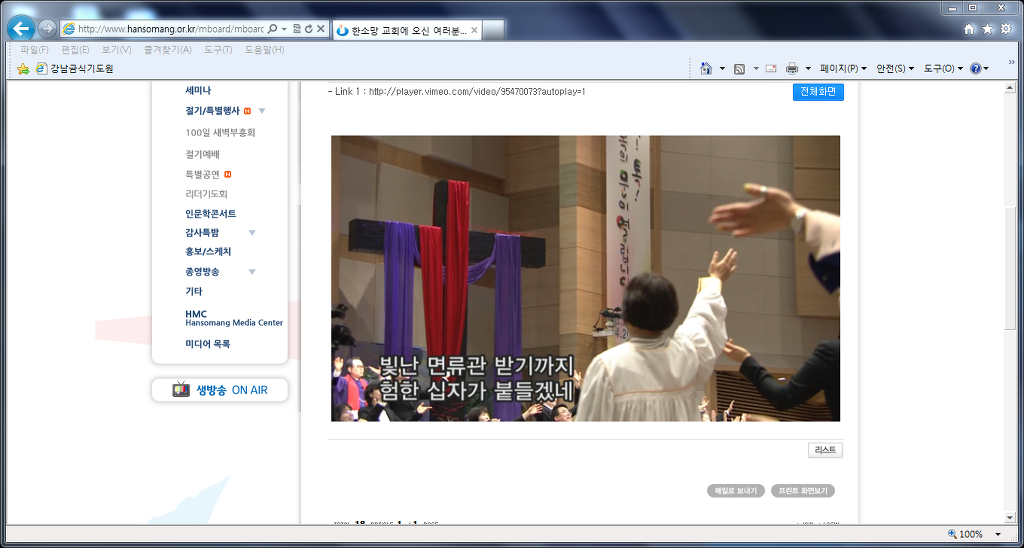 대한예수교장로회 통합교단에 소속된 한소망교회 홈페이지인데 성찬식하는 모습보니까 카톨릭하고 비슷하게 하더군요 십자가에다 천을 M으로 걸어놨구요 작성자예수님사랑|작성시간14.10.13|조회수361 목록 댓글 0 글자크기 작게가 글자크기 크게가 한소망교 회에도 십자가에다 천을 M으로 걸어놨더군요 빨간색천은 가로로 걸어놨네요 다음검색 현재 게시글 추가 기능 열기 북마크 공유하기 신고 센터로 신고 댓글 댓글 0 댓글쓰기 답글쓰기 댓글 리스트