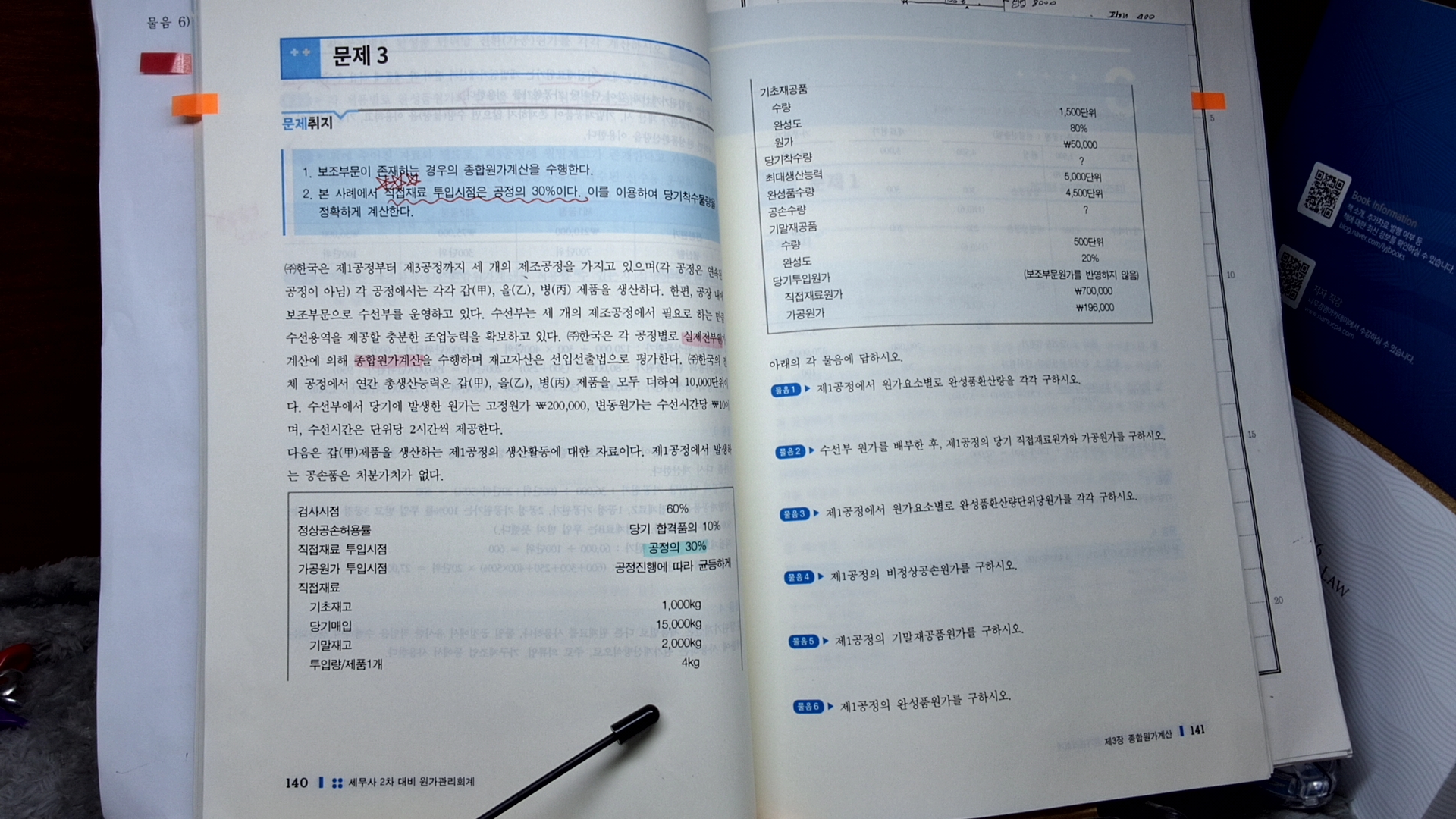 문제 포인트는 직접재료는 30%에 투입하니까 기말재공품은 20%라서 재료 투입이 안됐다는것 같아요