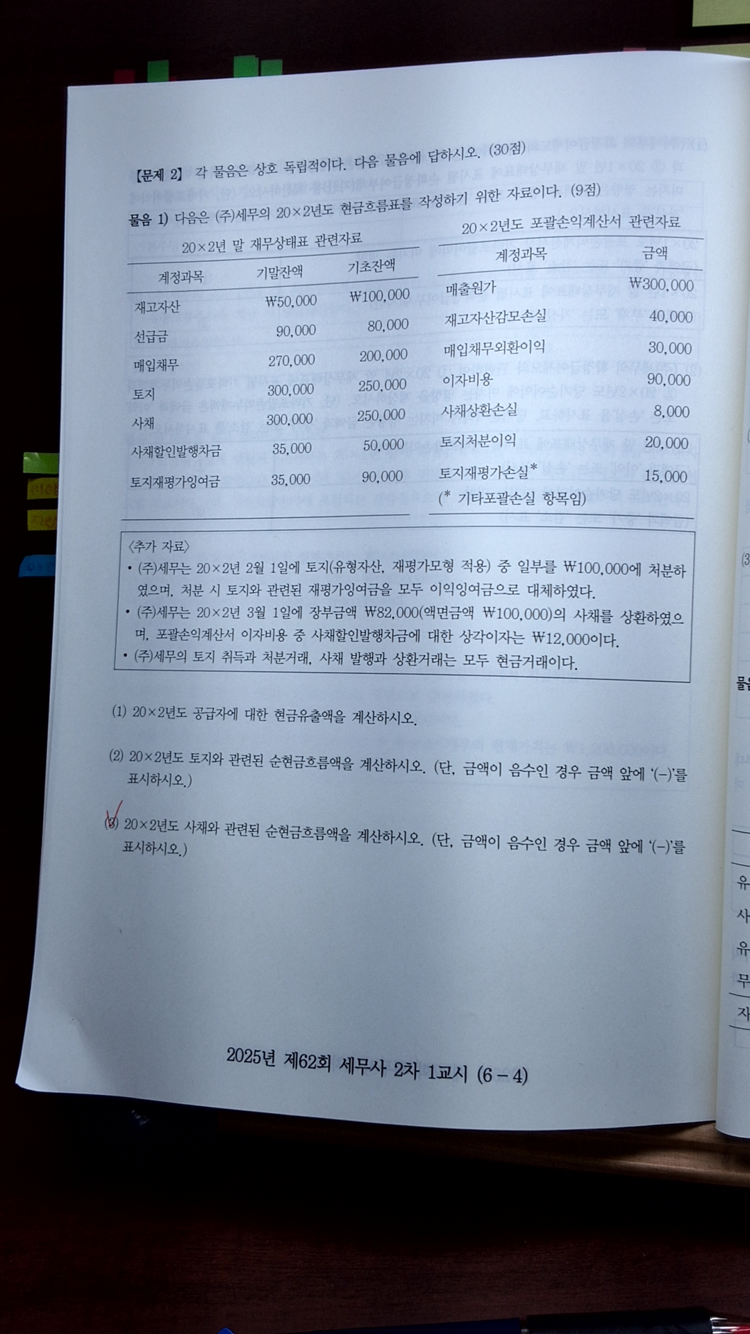 답댓글 작성자jijung0412 작성자 본인 여부 작성자 작성시간 26.01.01 이자비용 재무활동으로 분류도 가능해서 문제에는 별도 단서가 없어서 궁금했습니닷!