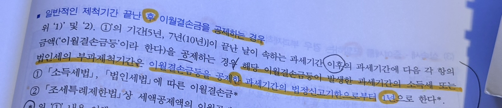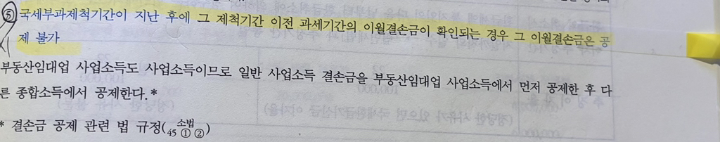 위의 사진은 소득세 이월결손금 통산에 나온 내용