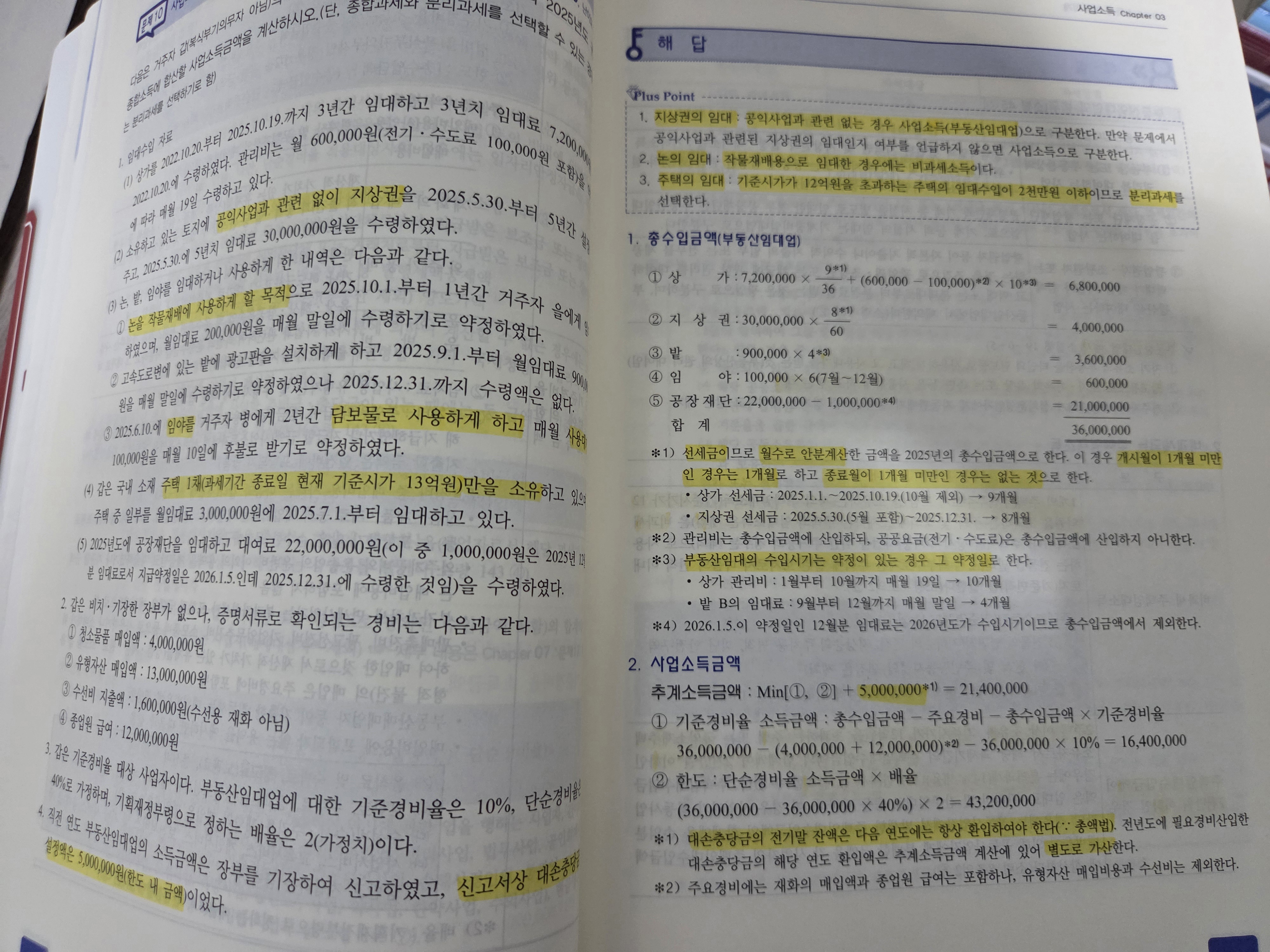 세무회계의 경우 제가 부족한 탓이지만, 개인적으로 마음에 들지 않았습니다. 강경태 강사님 특유의 어록?들이 많은데, '이건 날라가야지', '앞에 봐야지' 등과 같은 은근히 스트레스 받는 점들이 많았습니다. 연습서 또한 문제의 구성이 수많은 포인트들을 한 문제에 담아버리는 식으로 난이도가 상당합니다. 개인적으로 연습서의 용도는 회독을 하며 취약한 포인트를 확인하고, 그 취약한 부분들을 반복해야 효율이 높다 생각하는데, 강경태 강사님 연습서는 그 부분에 있어 조금 아쉬웠습니다. 그래서 필수문제만 4회독 진행 후 주민규 강사님 연습서로 바꿔 회독을 진행하였습니다. 주민규 강사님 연습서의 경우 강경태 강사님 연습서에 비해 문제의 호흡이 짧은 편이고, 그렇다고 해서 각 문제별 난이도가 쉬운 것도 아닙니다. 물론 호흡이 긴 문제들을 연습할 수 있다는 점에서 강경태 강사님 연습서가 좋긴 하지만 ,이 부분은 추후 실전연습 과정에서 충분히 보완 가능하기에 개인적으로 주민규 강사님 연습서를 만족하며 풀었습니다.