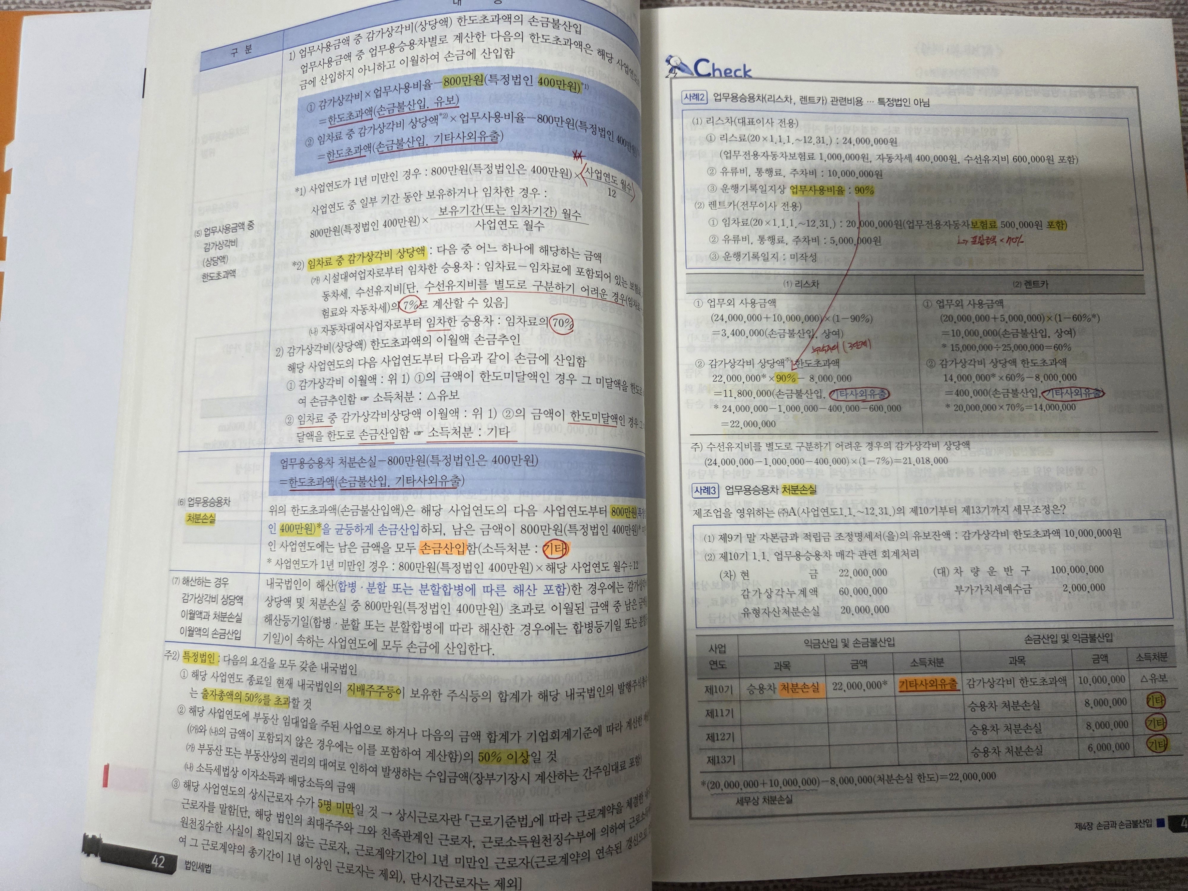 유은종 강사님 강의를 수강하시면 각 세목별로 빨, 노, 파 순으로 중요도를 나눠 필기를 해주십니다. 하지만 저는 모든 빨, 파, 노를 노란색 형광펜으로 필기했습니다. 개인적으로 세법학은 강사님들이 찝어주는 파트만 가져가는건 리스크가 너무 크다고 생각했습니다. 또한 제가 다른 동차생들에 비해 세법학을 많이 공부한 편이라 생각했는데, 강사님들이 찝어주는 파트만 가져가버리면 제가 가진 장점을 제대로 활용하지 못한다고 생각했습니다.