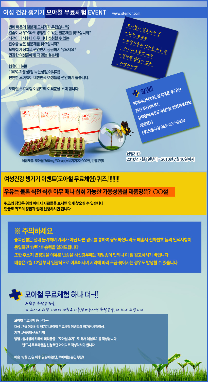 작성자귀염댕이소망이 작성시간 10.07.13 모아철~~3 개월인데 철분째 꼭꼭~~ 필요해요~~~신청합니다.^^