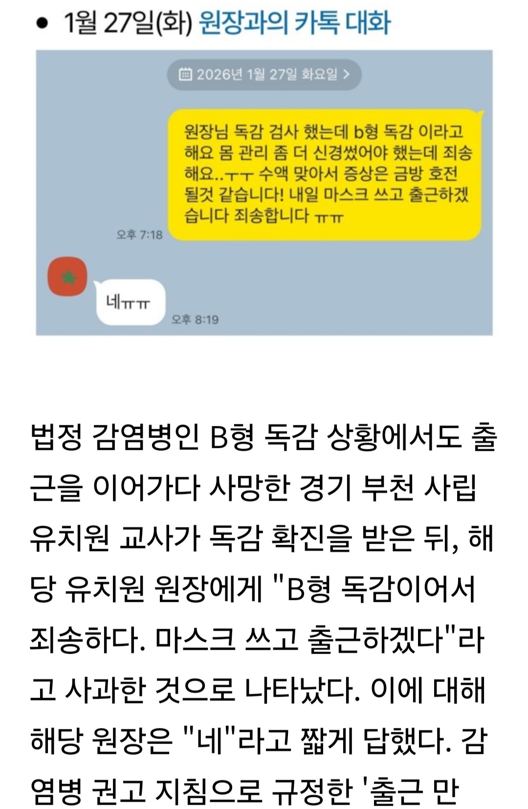 저래 놓고 학부형한테는 선생님 독감 걸렸단 말 안 했겠죠?