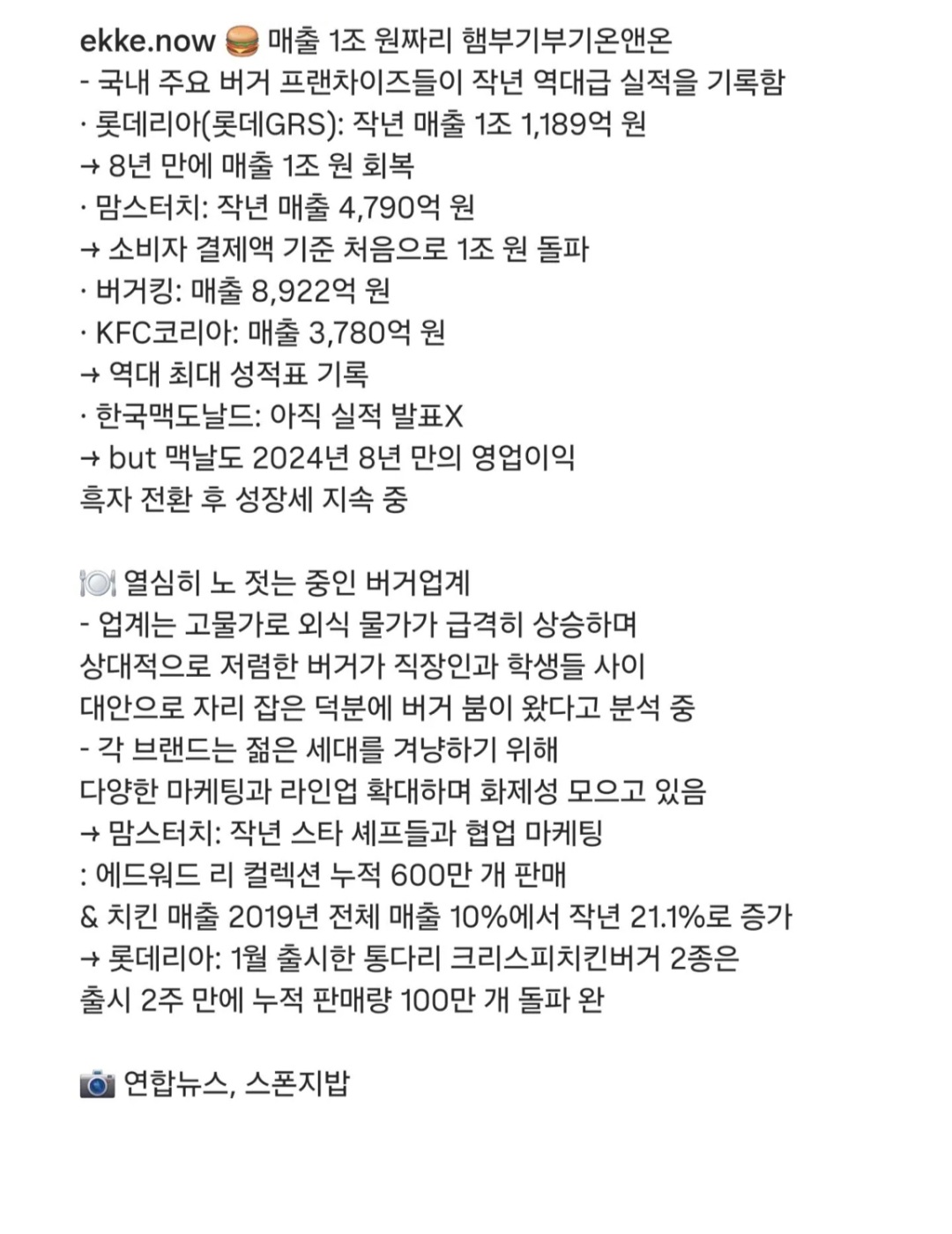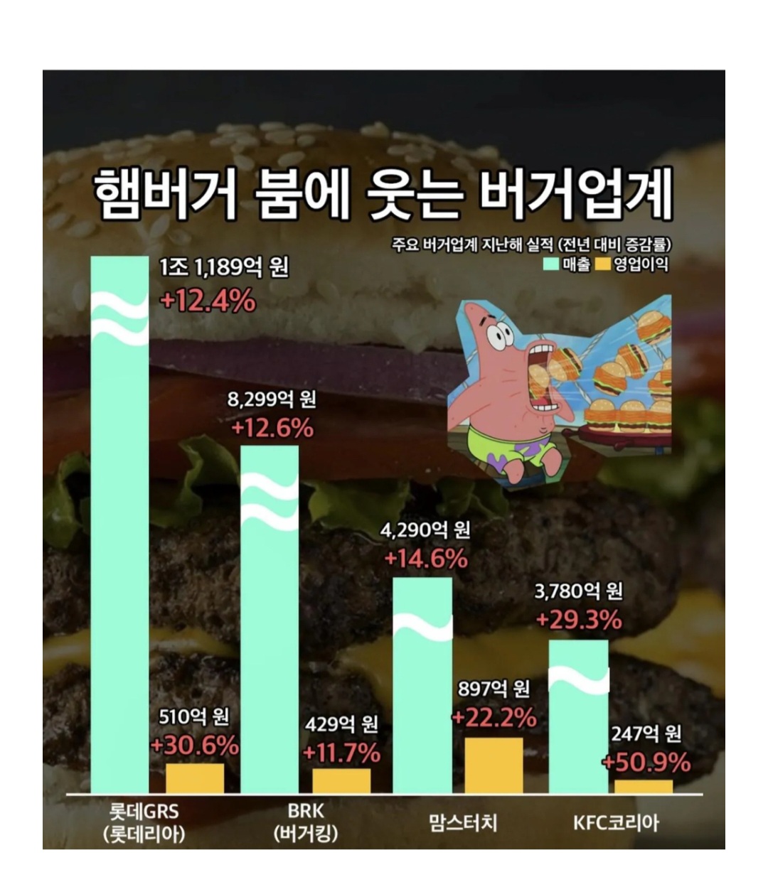 요즘 대박난 업계 작성자맘회원님|작성시간26.04.04|조회수3,449 목록 댓글 2 글자크기 작게가 글자크기 크게가 다음검색 현재 게시글 추가 기능 열기 북마크 공유하기 신고 센터로 신고 댓글 댓글 2 댓글쓰기 답글쓰기 댓글 리스트 작성자맘회원님 | 작성시간 26.04.04 햄버가 고효율 음식인듯 작성자맘회원님 | 작성시간 26.04.04 난 롯데리아 별로던데 댓글 전체보기