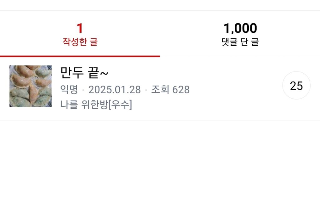 임출 글쓴거 싹 지웠네요 작성자맘회원님|작성시간26.04.10|조회수472 목록 댓글 25 글자크기 작게가 글자크기 크게가 아쉬워 이거남겨놨다가 만두가먹고싶네요ㅋ이것도 지우고첫째가군대가있는데 애 돌부터 그동안 많이 의지했는데아쉽!! 다음검색 현재 게시글 추가 기능 열기 북마크 공유하기 신고 센터로 신고 댓글 댓글 25 댓글쓰기 답글쓰기 댓글 리스트 답댓글 작성자맘회원님 작성자 본인 여부 작성자 | 작성시간 26.04.11 네 50개씩지우기 가능해요 답댓글 작성자맘회원님 | 작성시간 26.04.11 어디서요? 답댓글 작성자맘회원님 작성자 본인 여부 작성자 | 작성시간 26.04.11 pc모드로 해보세요 작성자맘회원님 | 작성시간 26.04.11 저도 거의 20년.여기만한 데 없더라구요 답댓글 작성자맘회원님 작성자 본인 여부 작성자 | 작성시간 26.04.11 그러게요.. 댓글 전체보기