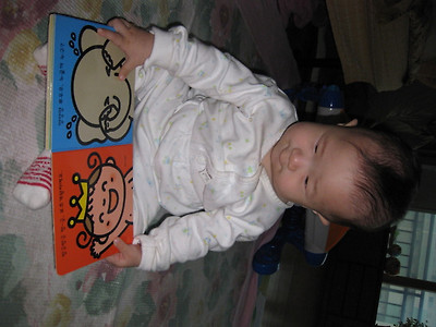 이제는 허리 힘을 길러서 혼자 앉을 수 있게 되니까 바닥에 앉혀주고, 책을 주면 양 손에 책을 꼭 쥐고 책을 보곤 한답니다.