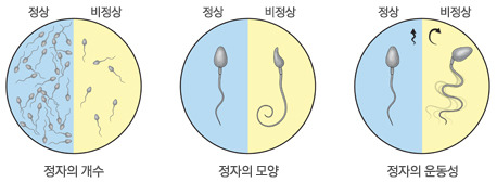 - 정자세포의 60% 이상은 정상적인 형태를 보여야 함.