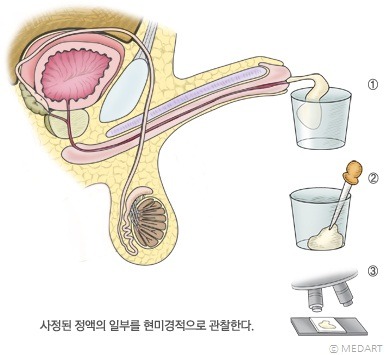 사정을 통해 얻어진 정액을 대상으로 되도록 채취 1시간 내에 검사해야 정확합니다.