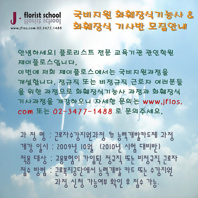 안녕하세요! 플로리스트 전문 교육기관 관인학원 제이플로스입니다.