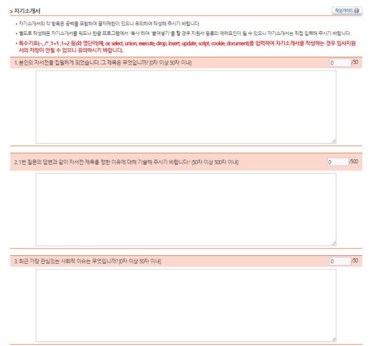 모집 요강 확인 하시고, 자기소개 항목 잘 읽어보신후 작성 시작에 서둘러 주세요!