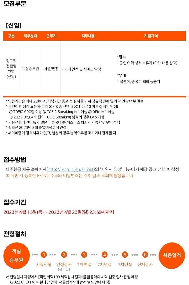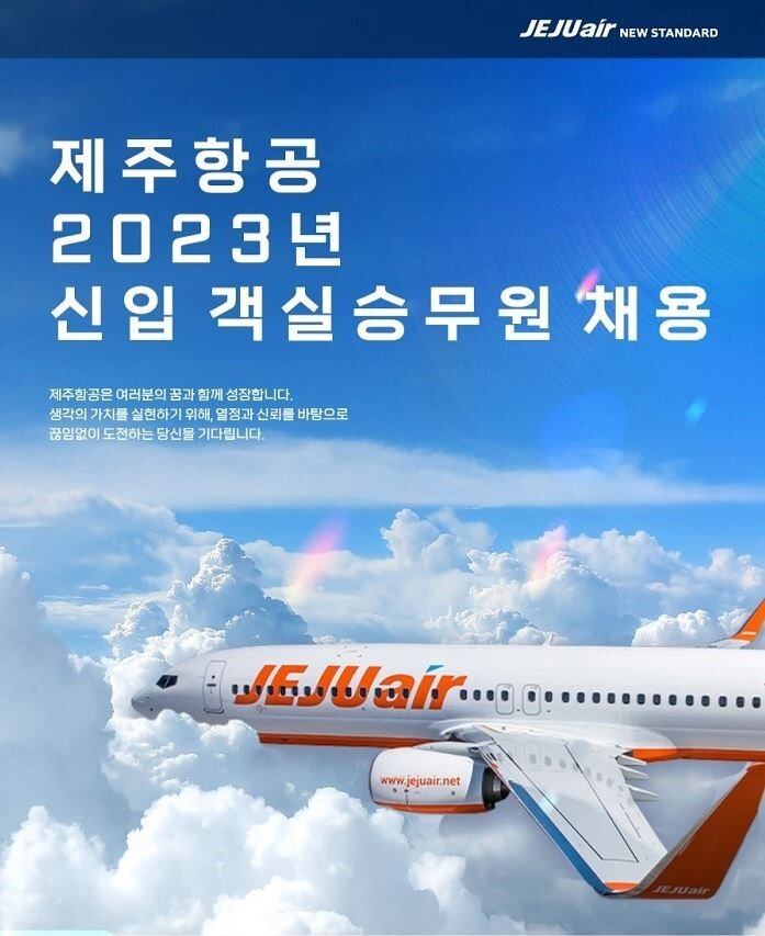 제주항공의 신입 객실승무원 채용이 났습니다.