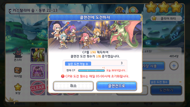 하루 남은 노말 파밍을 위해 스태미나를 채워두자.
