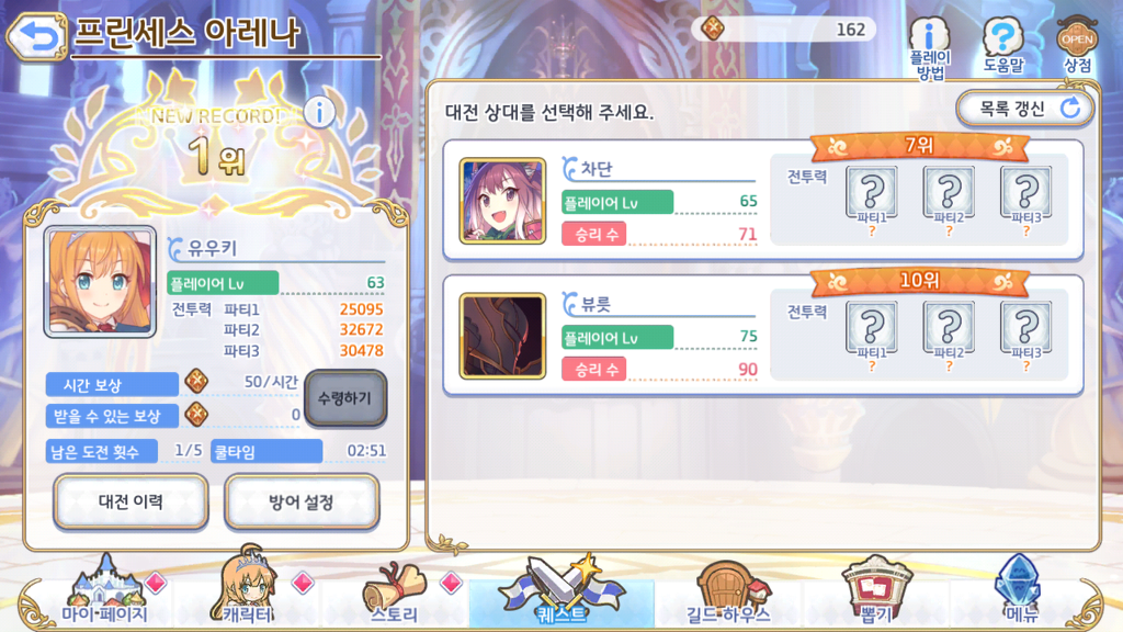그리고 이분들이 순위가 계속 올라가는게 보인다 싶으면 공격해두고 홀드 (일시정지)를 건 후 기다렷다 푸시면.....