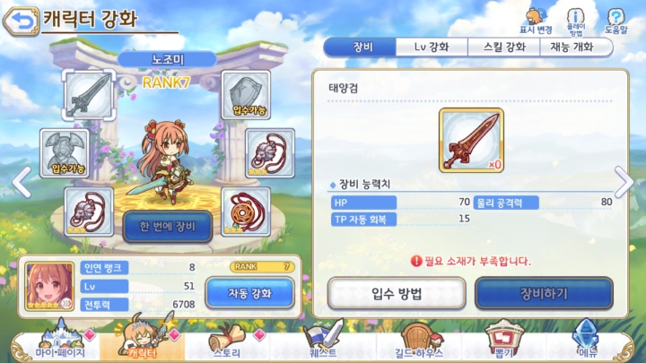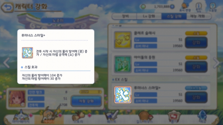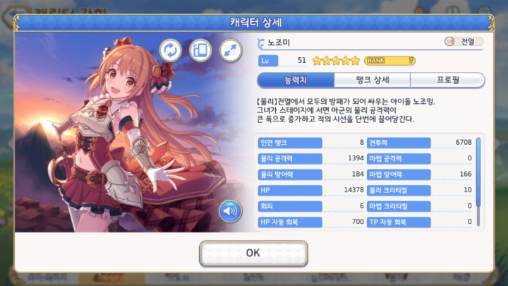 현재 노조미 시즈루 스즈나 7랭상태 하츠네 마호는 5랭풀강상태입니다..경험상 6랭은 강화없이 바로 건너 뛴는게 나은거 같더군요..강화마나도 무시 못하고 5랭크 풀강화면 6랭크장비나 7랭크 일부장비까지 파밍이 되기에 구지 6랭크 풀강할필요는 없습니다..노조미 5성 ex스킬 오타좀 고쳐 주세요..마공이아니라 마방인데..그리고 5성찍으면 물방(대)로 변하는지 알았는데 재가 잘못알고 있는건지;여전히 중이네요..ㅠ